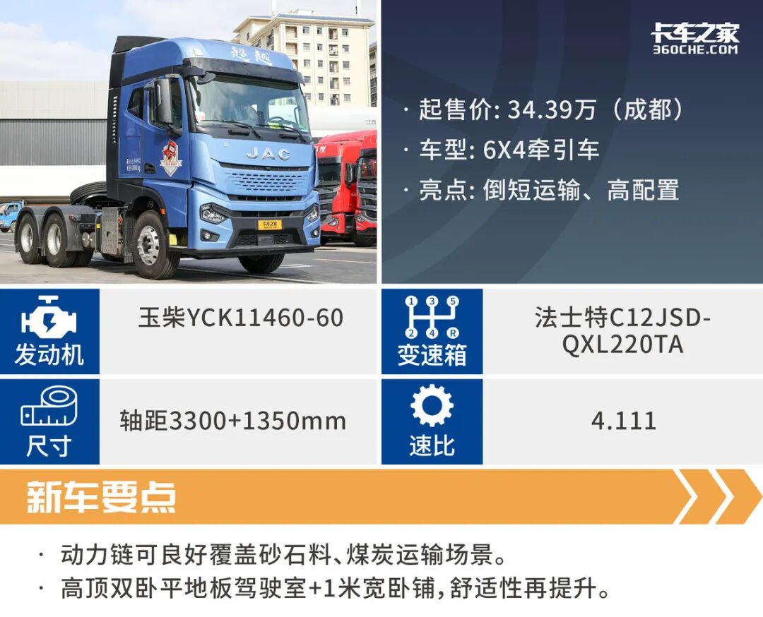 曾经参与倒短运输的卡友选车标准相对比较简单,强大可靠的发动机、结实的车架就能满足他们赚钱的需求,但随着倒短运输对于时效性以及经济性层面的提升,要求卡车具备更高的舒适性以及综合能力,而江淮超越Q7正是这样一位综合能力很强的选手。