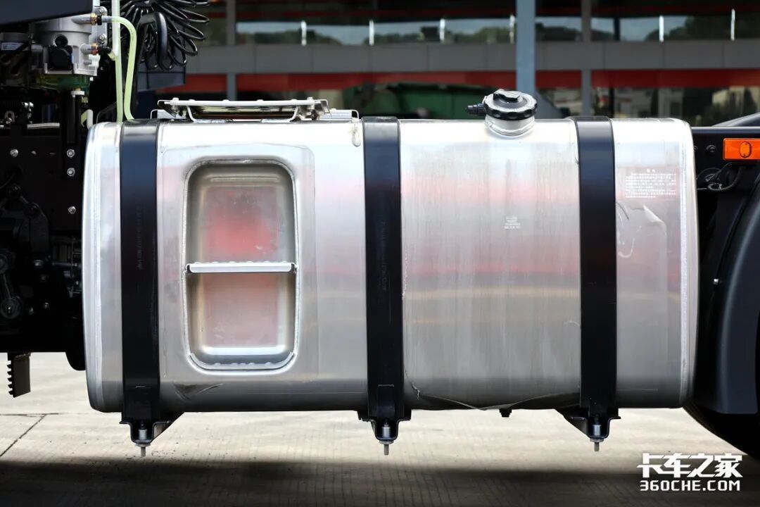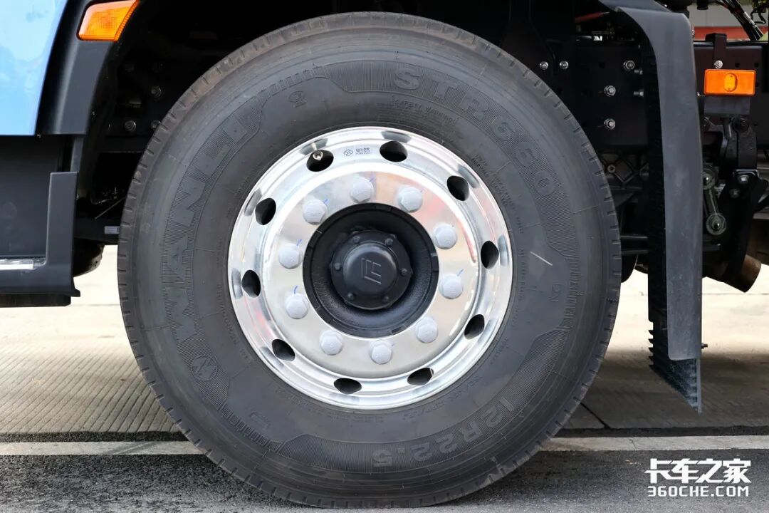 全车配备了万里品牌的STR660系列轮胎,尺寸为12R22.5,主打综合工况,并且在前桥还标配了铝合金车轮,进一步降低整车自重。油箱采用单侧铝合金制式设计,容积达到了600升,可以为超越Q7提供接近1800-2000km的续航里程,应对倒短工况绰绰有余。