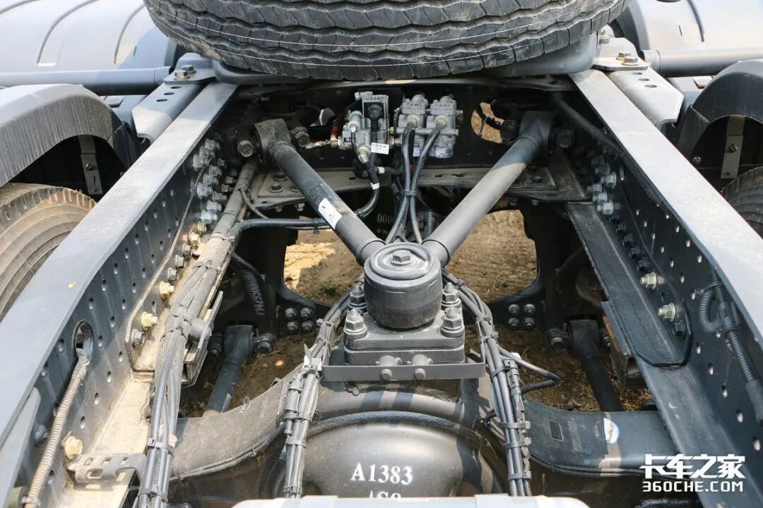 440后桥,速比3.7,适合高速国道综合路况,燃油经济性较好,10万公里长换油设计,节约了保养时间。同时还配备轻量化少片簧(3片)。