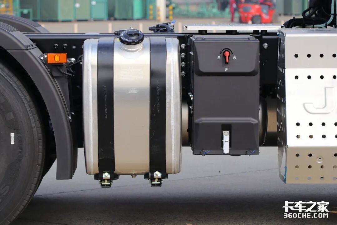 铝合金双油箱总容积为1100升,这也使得超越Q7很适合跑长途干线物流,在标载运输工况下,可以为车辆提供超3000公里的续航里程。此外大油箱设计可以减少车辆进出加油站加油的频率,一定程度上节省了运输时间。
