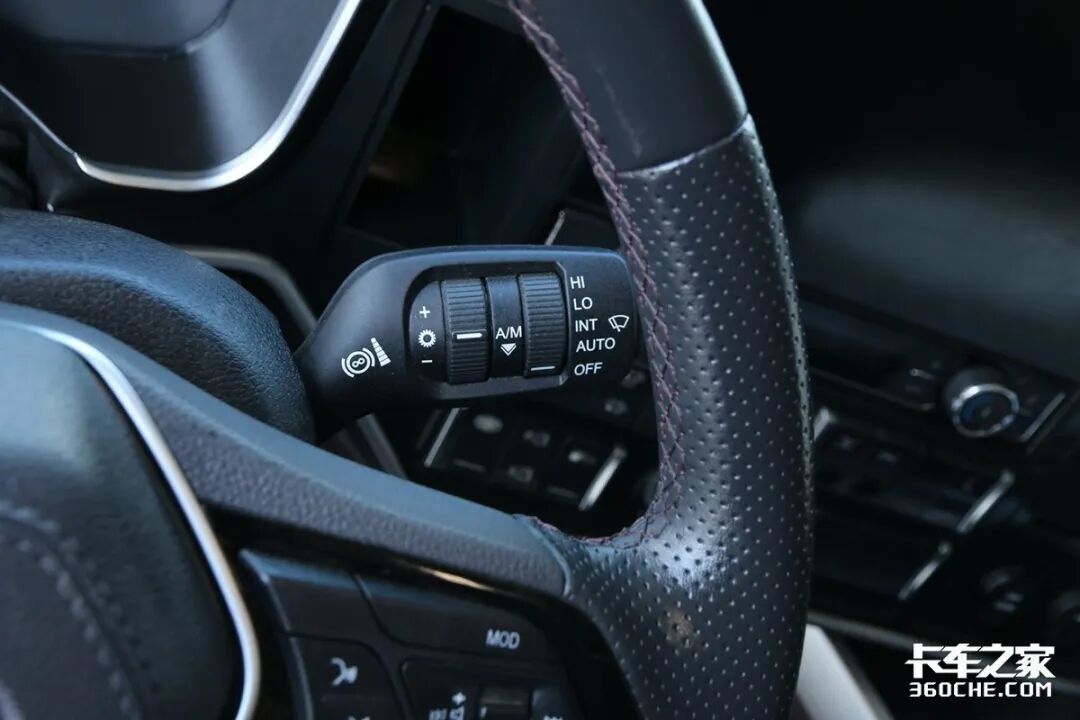 为了让操作更加便利,功能集成度更高,鹰途方向盘右侧的操纵杆被赋予了多样的功能:上下扳动操纵杆,可以调节液力缓速器的挡位;前后推动,是手动干预变速箱加减档,这样一来,在起伏较大的山路上行驶时,我们的操作会更加自如、更加省心。