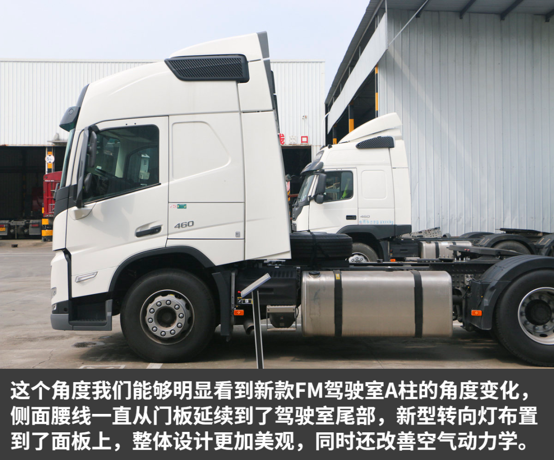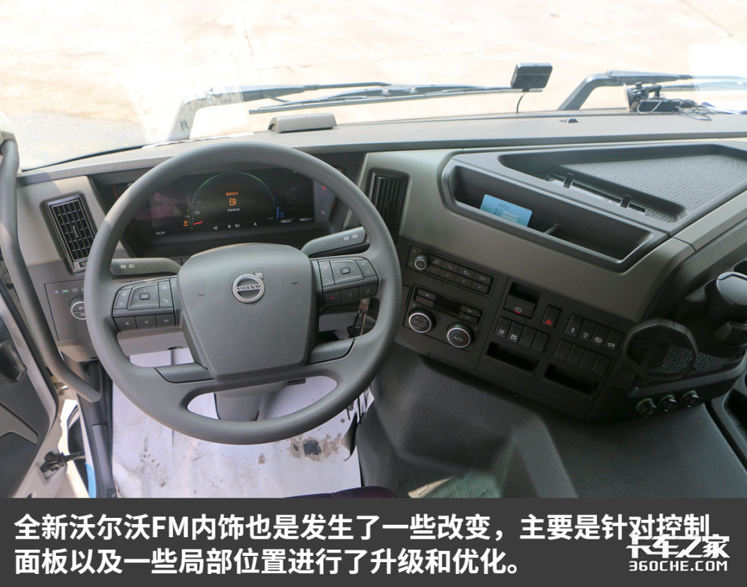 新款沃尔沃FM吸取了FH上的一些设计特点,整车看上去更像是一个小号的FH卡车。驾驶室A柱的变化对整车影响很大,无论是视野还是实用性、驾乘空间上,都比老款有了明显提升。