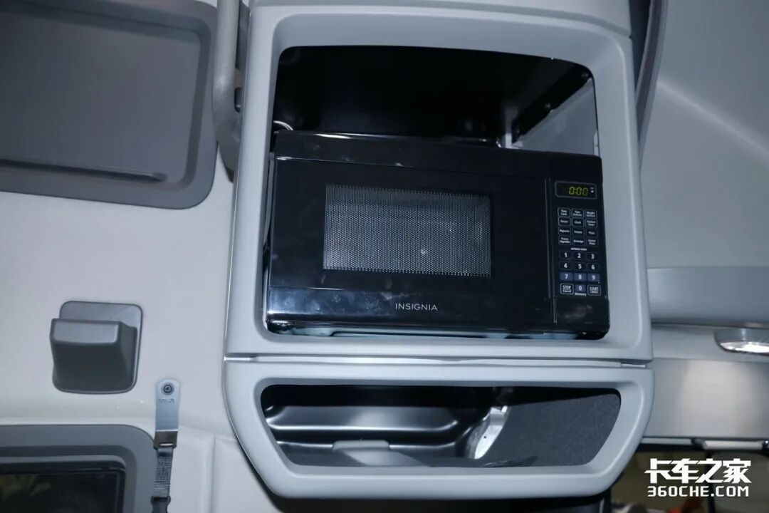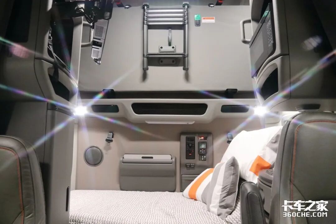 如果看完底盘和外观,只是有些心动的话,或许看完驾驶室,你一定会感慨这才是“真正移动的家”,细节方面的配置真的让人很羡慕。这款VNL760装配的是高顶双卧加长驾驶室,主要针对的是中长途运输,其实美国人也有在车上生活、做饭的需求,那么VNL760是如何满足美国卡友的痛点需求呢?