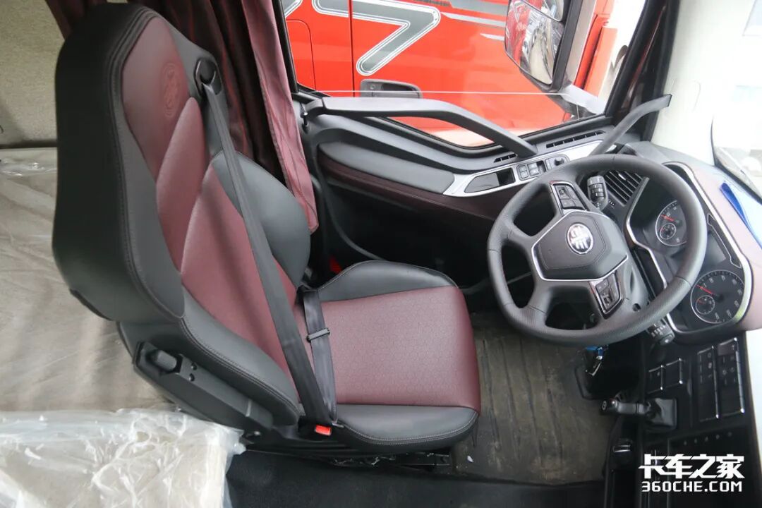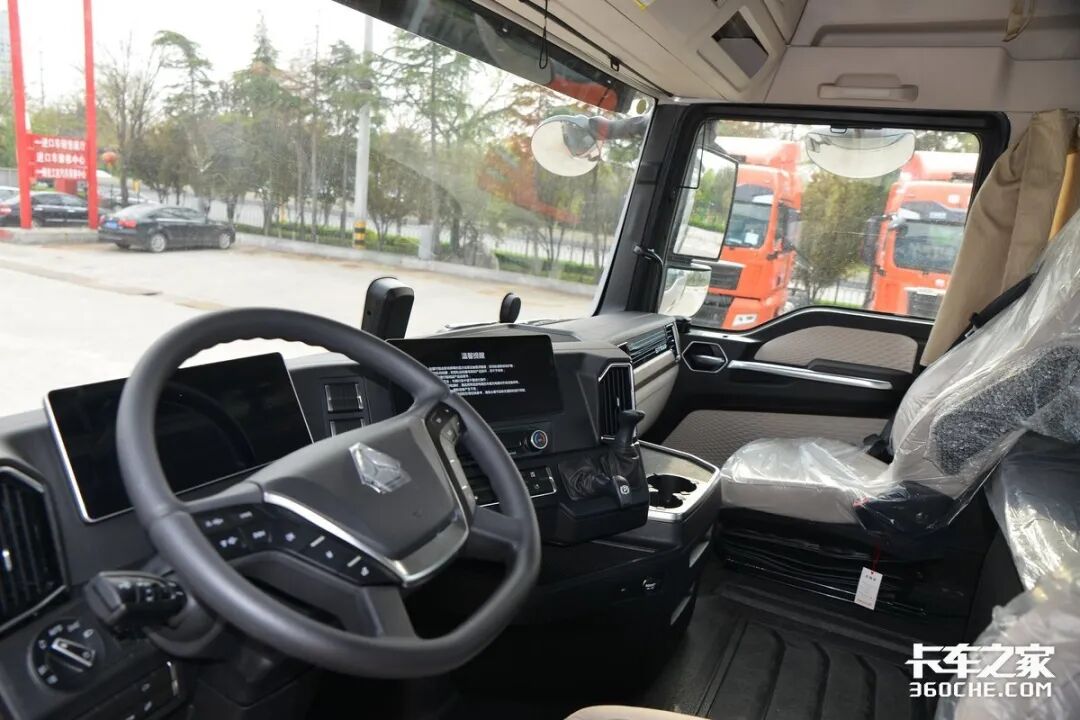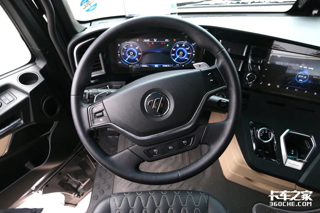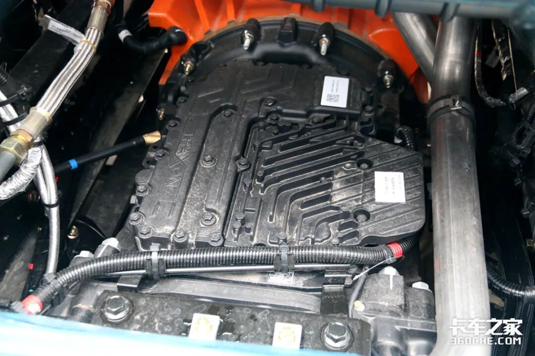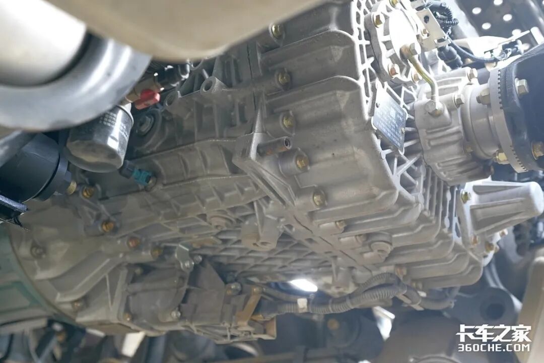 在变速箱方面,实拍车型采用了采埃孚12TX2620TD的12挡AMT变速箱,这款变速箱的传动效率达到了99.7%,传动效率越高意味着整车动力输出更加顺畅,动力表现也更加优异。