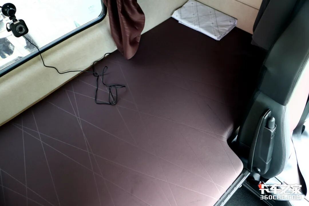 在卧铺方面,J6V采用了上下双卧铺设计,当然你也可以选择单卧铺+高架箱的组合,进一步提升车型的储物能力。根据我们测量,J6V的卧铺尺寸达到了1020mm,并且其厚度也达到了90mm,卧铺不仅足够宽大、而且舒适性也是直接拉满。