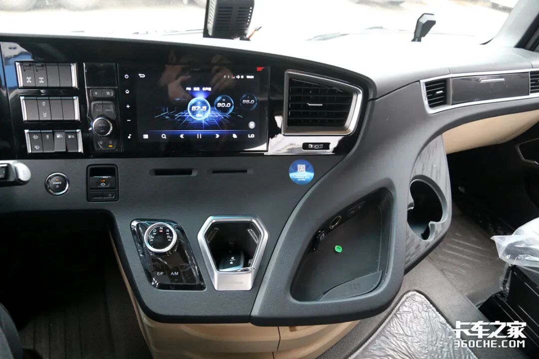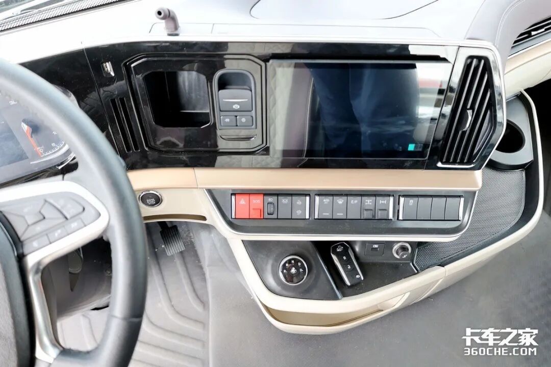 在配置方面,实拍车型配备了多功能方向盘、电子手刹、AUTO HOLD、全液晶仪表、全液晶屏幕、10英寸液晶大屏、自动空调等一系列配置。可以说目前高端牵引车上有的配置,鹰途几乎全部配备。