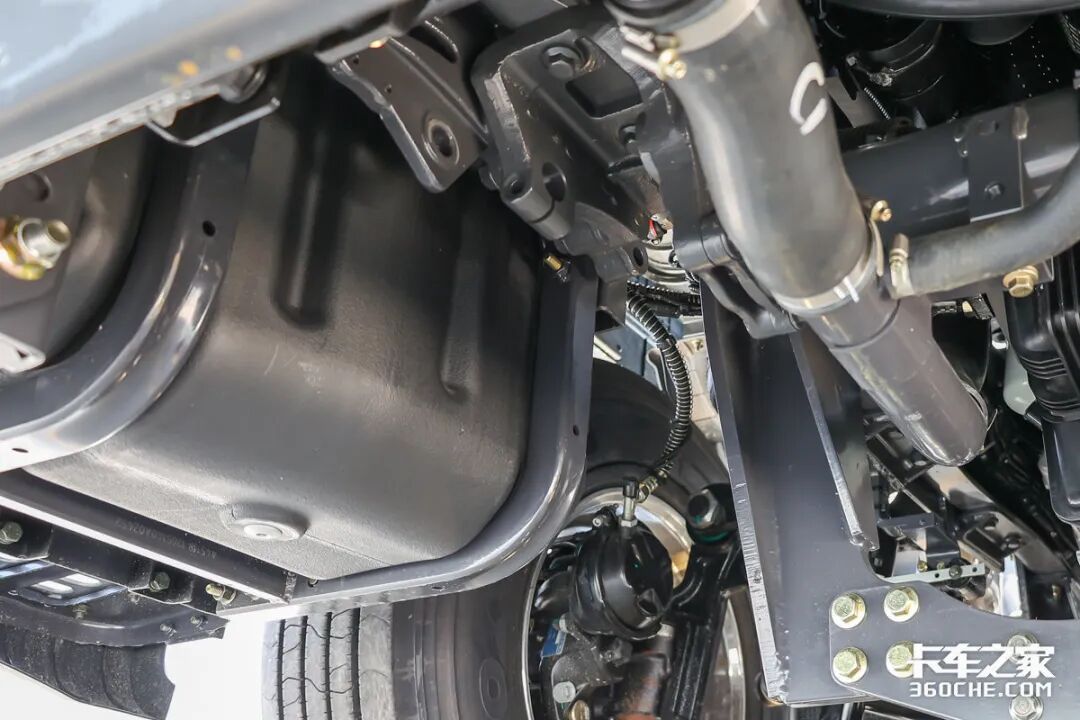 为精简底盘两侧零件的布局,实拍车型的尿素罐也如同乘龙H5V一样隐藏在了中网后面。