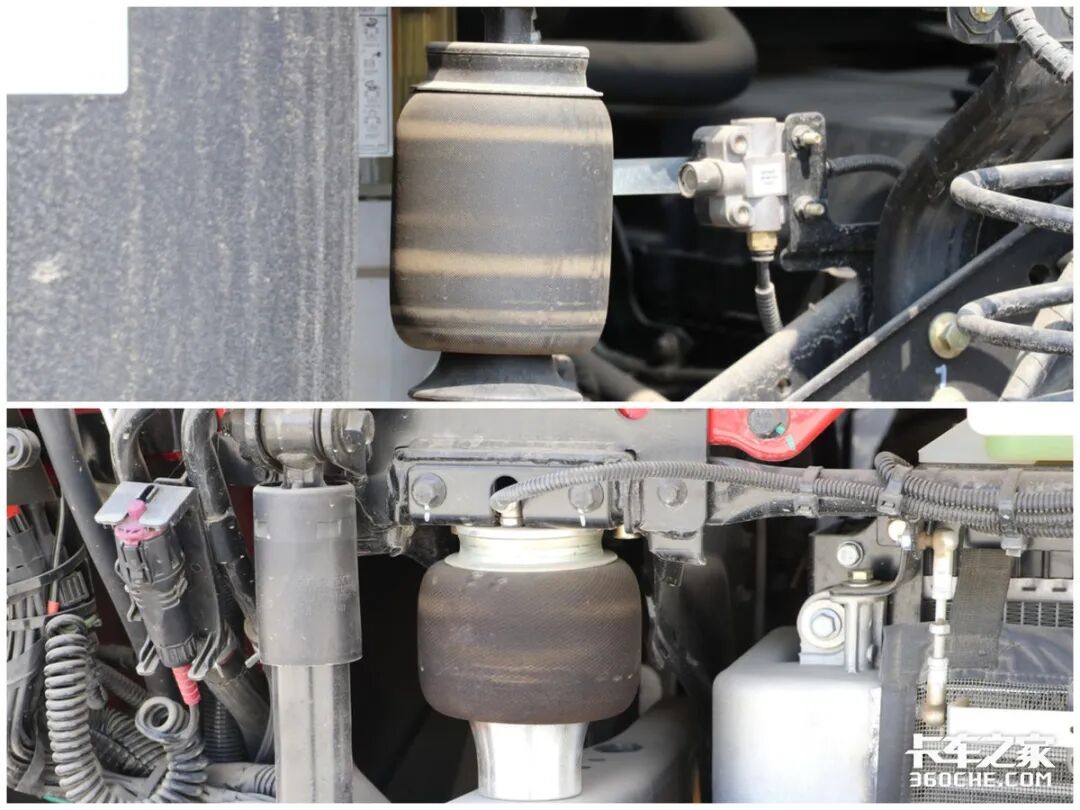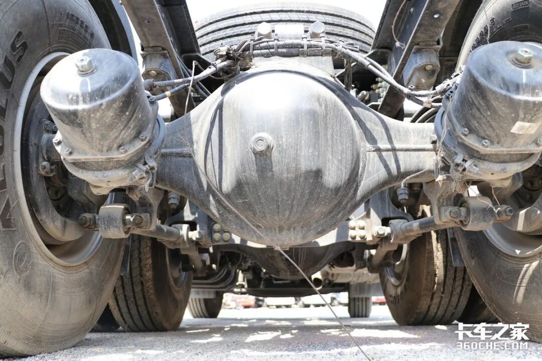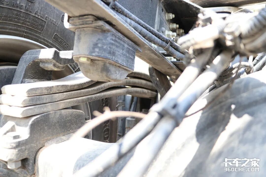 底盘其他配置上,实拍车右侧配备的是容积800L的铝合金油箱。按照百公里33L油耗计算,满油续航里程约为2400公里。