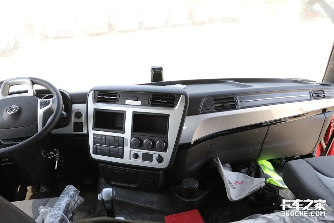 在中控台上,我们实拍的天龙KL是低配车型,高配车型的大液晶屏幕,变成了一个储物格。不过对于国产卡车而言,后期自己升级高配车机也是易如反掌,价格可能还能做到更便宜。