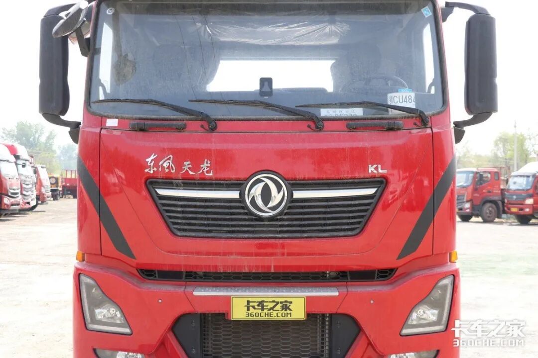 实拍的这款天龙KL外观和之前的款式没有任何变化,都是很熟悉的东风系造型及配色。高顶双卧驾驶室让车辆的高度达到了3.9米,气势上非常到位。一体式后视镜,也同步提升车辆档次和视觉效果。