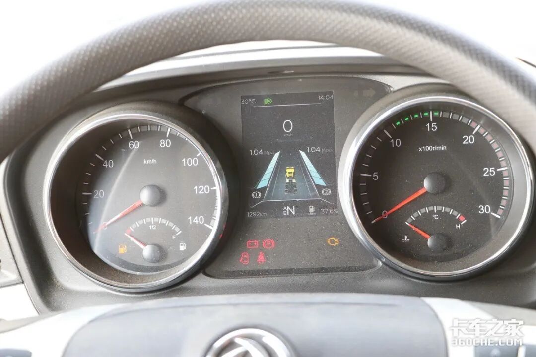 仪表台为彩色液晶+指针式设计,具有较强的乘用化风格,显示效果比较出色。左侧为车辆时速表和油量表、右侧为发动机转速表和水温表,中间的液晶屏则显示多个项目的数值,观看直观。