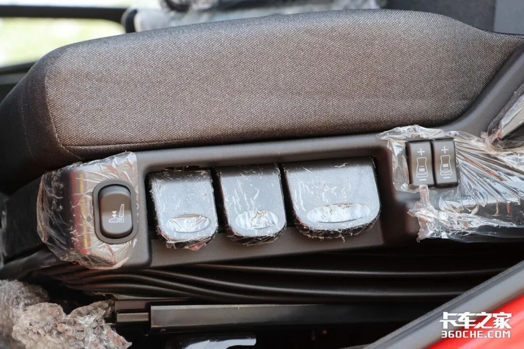 拉开天龙KL的车门,空气减振座椅出现在面前。除了多向位置调节外,一键升降、阻尼软硬均可调节,卡友的驾乘体验更加舒适。略显遗憾的是没有配备通风加热功能。