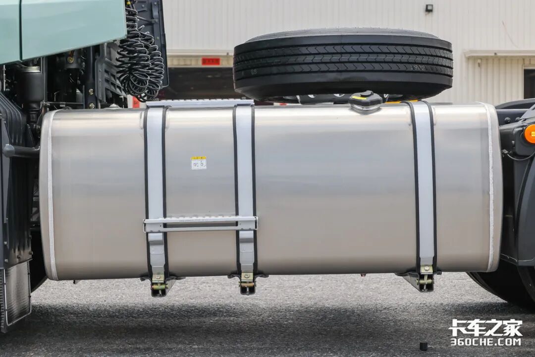 在底盘的一侧,是容量为800升油箱,铝合金材质打造带来了更轻、更美观、更耐用的优点,单次加满也能够满足中长途的运输任务,续航方面基本不用担心。