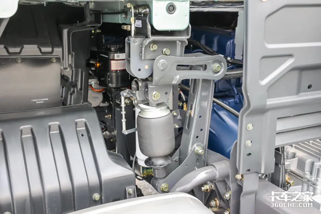 为了保证驾乘平稳,乘龙H5V驾驶室标配了四点式悬浮减震气囊,并结构中新加入了横向拉杆。这样做的好处就是在颠簸路面行驶,气囊过滤垂直方向震动的时候,可以很好地保持驾驶室横向的一个稳定性,人员坐在车内不容易左右晃动。