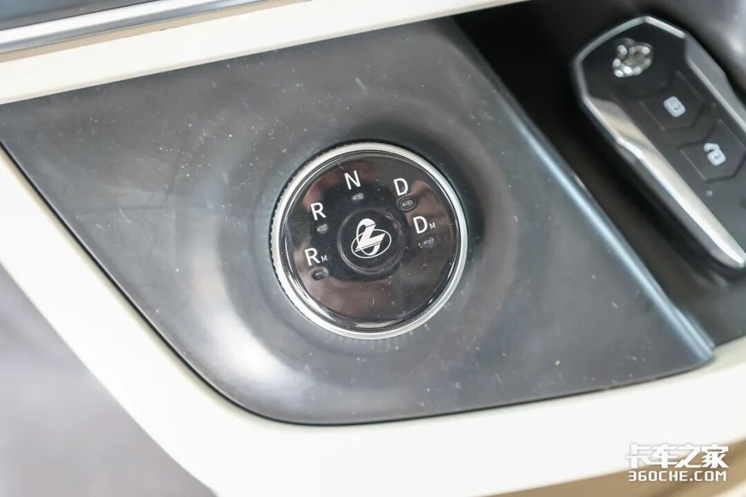 作为自动挡车型,驾驶员并不需要经常进行换挡操作,所以实拍车型的换挡机构采用旋钮式设计,并整合在中控台区域,节省不少车内空间。空挡、前进挡、倒挡、前进蠕行、倒挡蠕行五个挡位设置,也让驾驶员清晰易懂,便于操作。