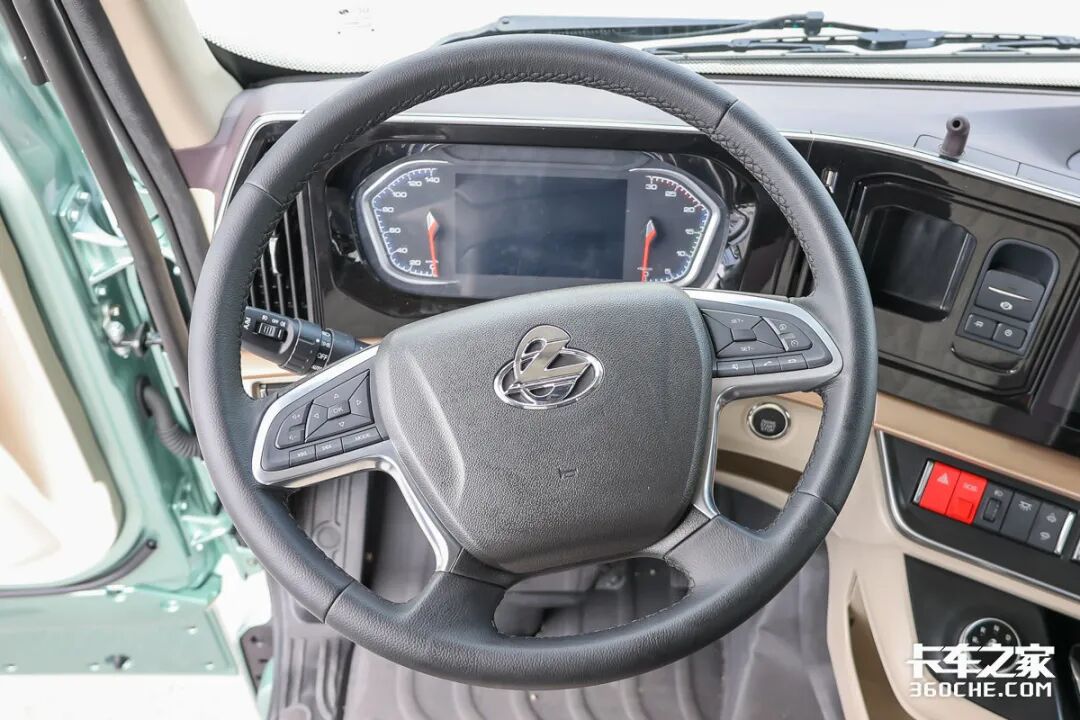 传动系统匹配了来自于法士特的12挡智行AMT变速箱F12JZ22A,壳体采用了铝合金材质,整体质量更轻。自动挡变速箱的加入有利于驾驶员释放右手和左脚,显著提升驾驶舒适度。据了解,法士特智行变速箱由国内自主研发,技术成熟,能根据不同路况进行精准的挡位匹配,更好的做到动力平顺和节油驾驶,助力用户降本增效。