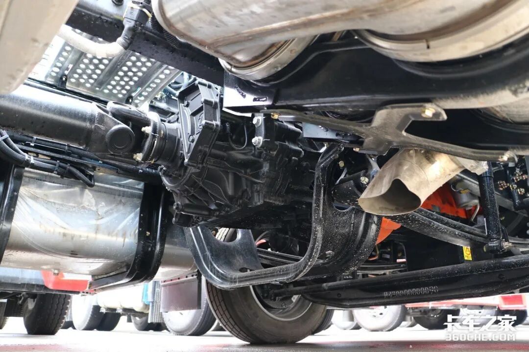 同时可以看到,轮端采用的是康迈轮端,标准的50万公里长保养,而且相对于脂润滑轮端,康迈的油润滑转动阻力更小,能略微提升车辆的性能。