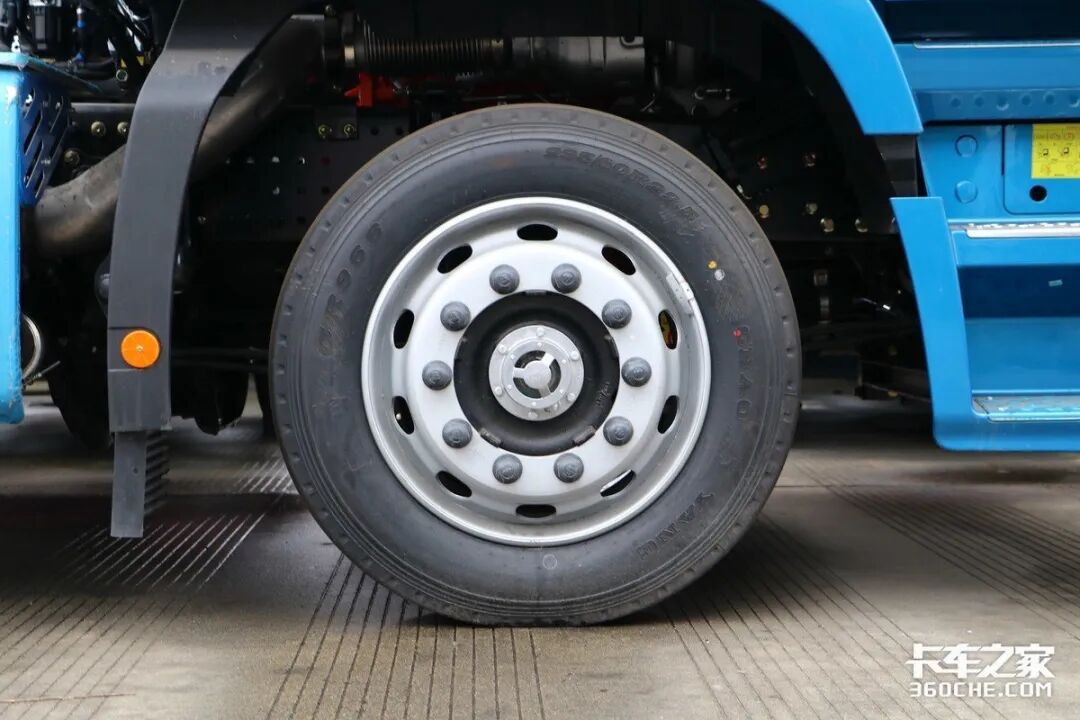 轮胎规格是采用了295/60R22.5,在快递工况下,相比12R22.5,295的轮胎会更省油一些。轮胎的提供商也是国内轮胎一哥朝阳轮胎。