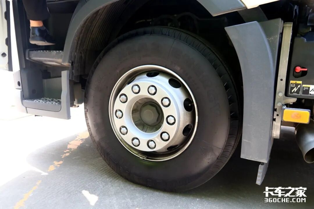 轮胎方面实拍车型全车使用了米其林品牌的XZA2ENERGY的轮胎,尺寸为295/80R22.5,这款轮胎可兼顾导向轮和驱动轮的使用,同时扁平比较低,能够有效提升FH的行驶稳定性以及紧急避让时的支撑性。
