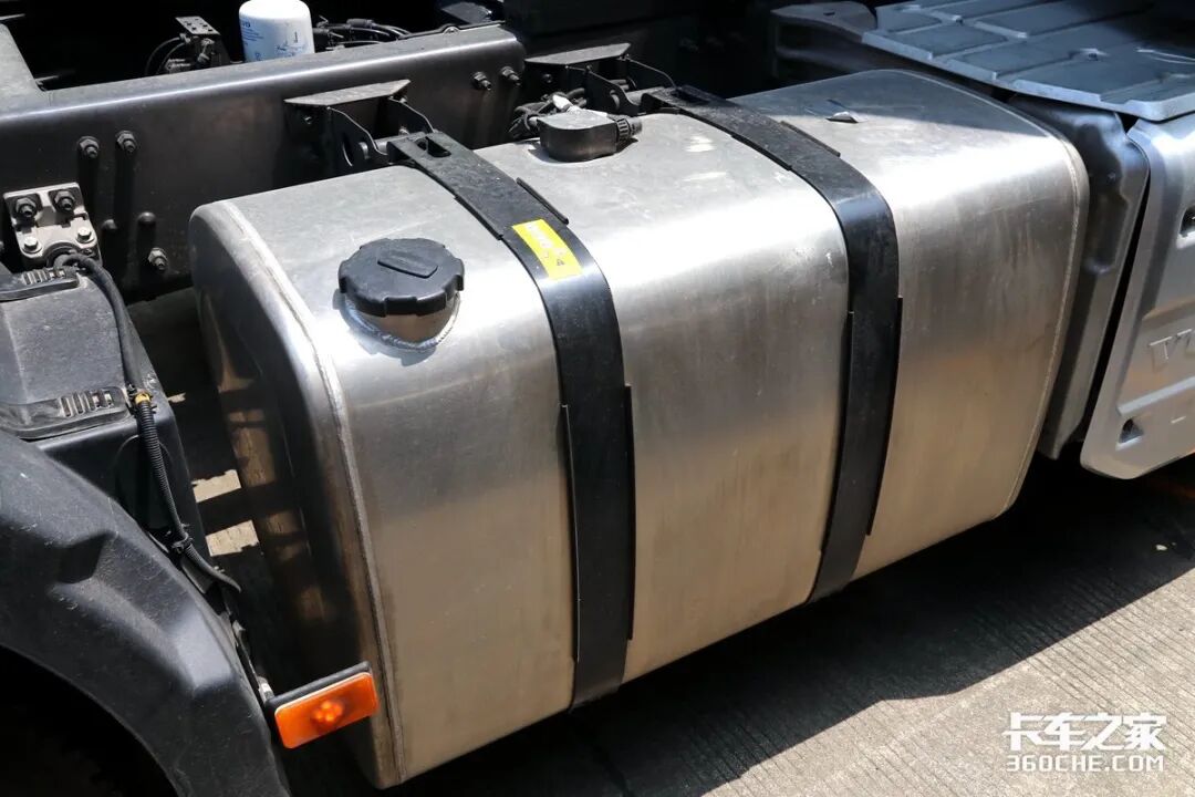 油箱方面,由于要容纳国六阶段较大的后处理系统,实拍车型在仅有的底盘空间中,使用了最大的油箱容积,左右相加共计900升,如果按照百公里33升左右的油耗计算,FH的续航里程同样能达到3000km左右,并且FH还将尿素罐上移至后处理上方。不少卡友会问,这样加尿素会不会不方便,以目前手中掌握的资料来看,国六阶段尿素使用量会增加,不少正规运营的加油站会引入专门使用的尿素枪,加注更加方便快捷。