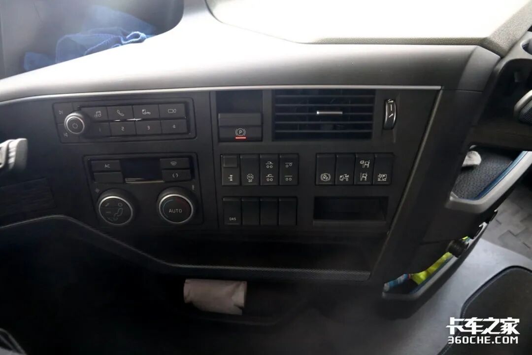 与老款FH车型相比,新款FH车型在中控台以及内饰整体的结构上差异不大,依旧可以选装方便放置物品的防滑托盘,依旧保持很高的内饰品质,从做工到设计来看,几乎挑不出什么毛病,这也是欧系进口卡车的一大特色。虽然目前国产车型在配置和用料上进步比较明显,但是做工以及设计来说,还是差了点意思。