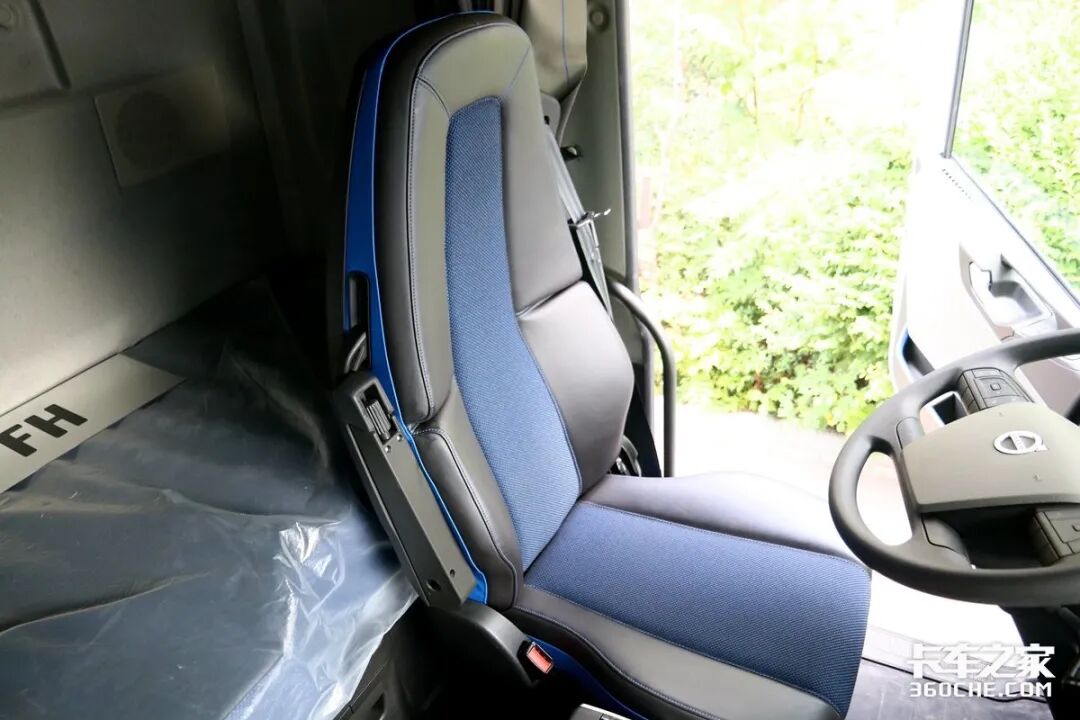 主驾驶的座椅提供腰部、背部的单独调节,此外也可以选装座椅通风、加热等功能,FH的座椅非常人性化,可以根据驾驶员的需求来选择面料,如果经常跑较热的沿海地区可以选择全布质座椅,乘坐更加透气。也可以实拍车型选择皮布混搭或全皮质的座椅,可以说选择性非常丰富。