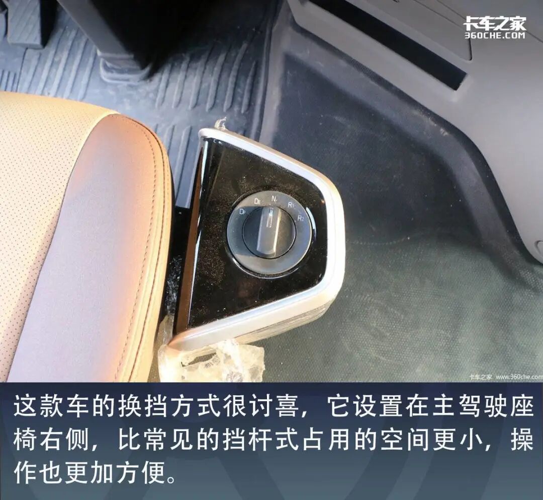 这款车采用环绕式中控台,所有按键均朝向主驾,司机抬抬手就能完成想要操作,更加符合人体工程学。而且还具备一键启动、无钥匙进入等一系列的乘用风格的潮流配置。