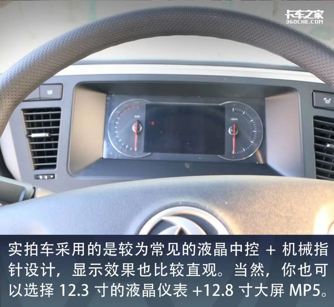 实拍车采用的是较为常见的液晶中控+机械指针设计,显示效果也比较直观。当然,你也可以选择12.3寸的液晶仪表+12.8寸大屏MP5。