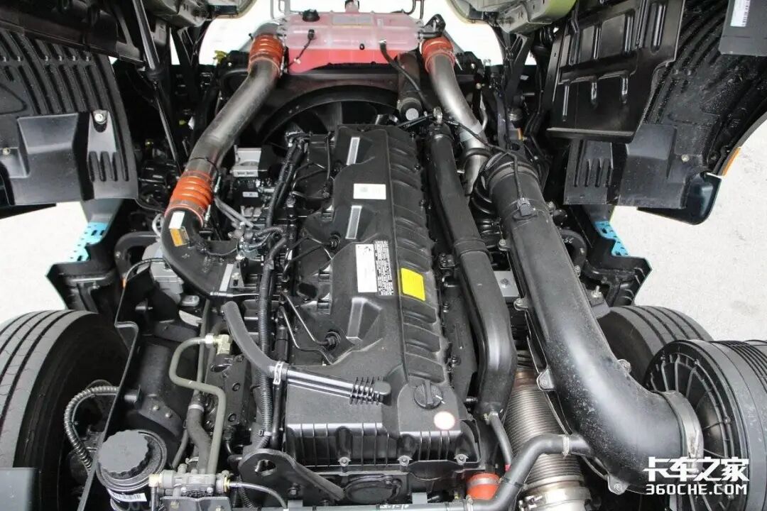动力链方面这款汕德卡C7H都采用的是重汽自家的产品,搭载的是MC13H.60-61发动机,排量为13.02L,最大输出功率为441kW(600马力),在950-1400rpm时可爆发峰值扭矩2700N.m,重汽的全新重卡黄河600马力牵引车同样搭载的是这款发动机。