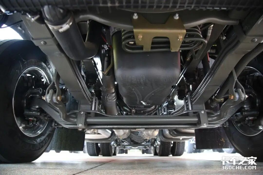 传动系统方面,乘龙H7陆航版选用的是采埃孚12TX2621TD AMT变速箱,另外也可选装伊顿的AMT变速箱。实拍车后桥选用的是东风德纳新440后桥,速比为3.083,搭配康迈免维护轮端,后桥的换油周期同样达到了10万公里,长换油的设计无疑可以大幅降低用车成本。