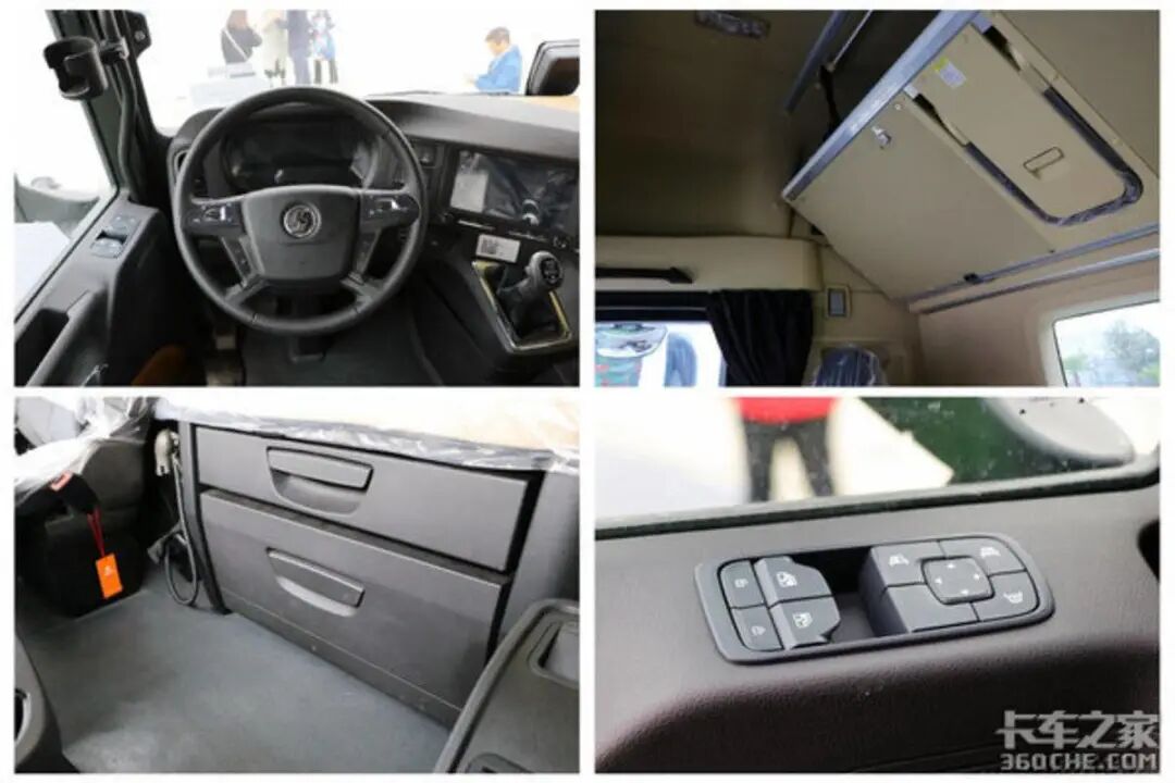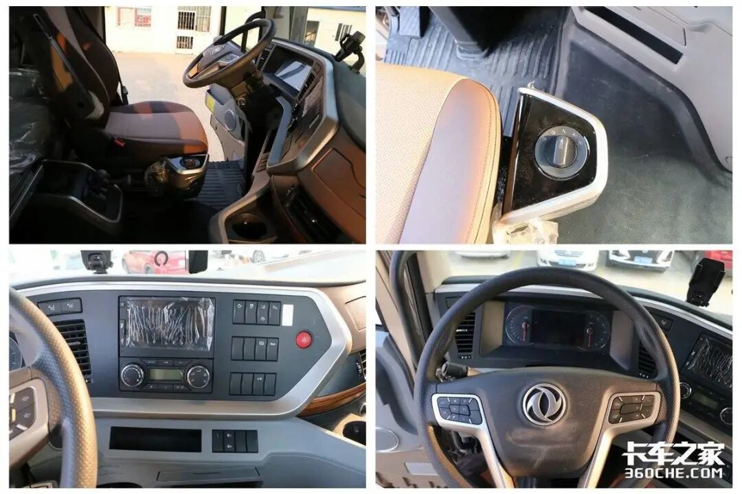 东风天龙KX王者版也采用的是近乎平地板设计,搭配四气囊减震,主驾驶座椅采用的是多项调节的气囊减震座椅,舒适性有保证。同时,这款车的换挡机构采用的是旋钮式设计,集成设计在主驾驶座椅旁,进一步释放了驾驶室内的空间,方便主副驾之间更换。