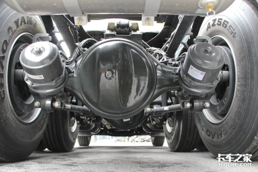 传动系统方面,这款车搭载的是重汽HW25712XAC AMT变速箱,匹配液力缓速器。后桥同样采用的是重汽自家的产品,型号为MCY13BES,速比为3.7,而且带有提升气囊结构。轮胎规格为295/80R22.5,搭配铝合金轮圈。