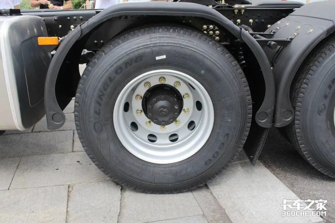 后桥方面,使用了汉德469冲焊桥,速比为3.364,相比于大多数460马力、后桥速比3.7的车型,三一英杰版选择的超速挡+3.364速比后桥也是理所当然,是一个兼顾了低速动力表现和高速油耗表现的选择。