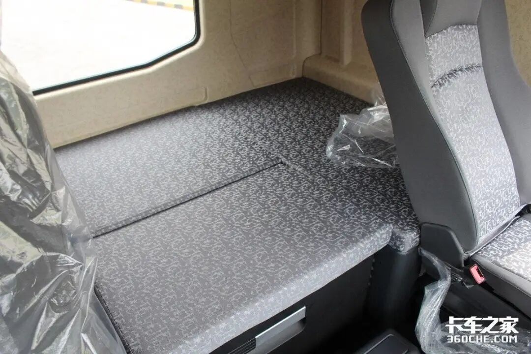 让人感到非常惊喜的是,该车后排卧铺的宽的达到了1.2米,而且是等宽设计,这一点要超过很多品牌的旗舰级重卡,就不说一个人谁在上面有多爽,就说是夫妻加卡友,完全可以把这个下铺当作双人床来使用。
