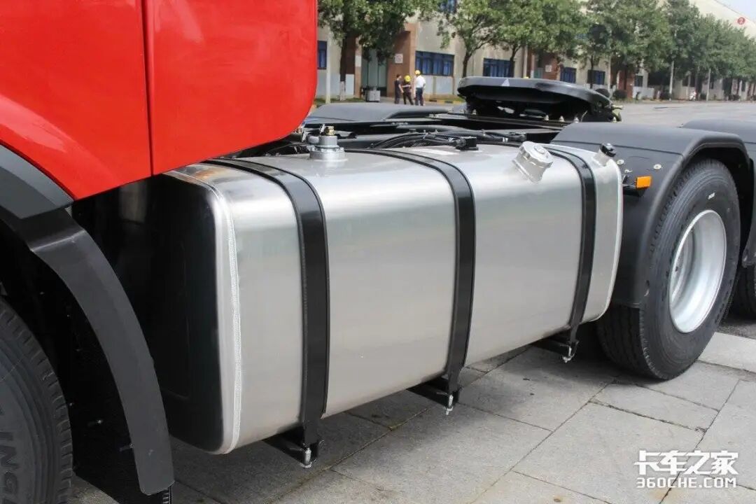 双边铝合金油箱的容积为700+100,800升。如果按照百公里30-35升油耗来计算,保守估计可以为这辆英杰版提供2200公里以上的续航里程。