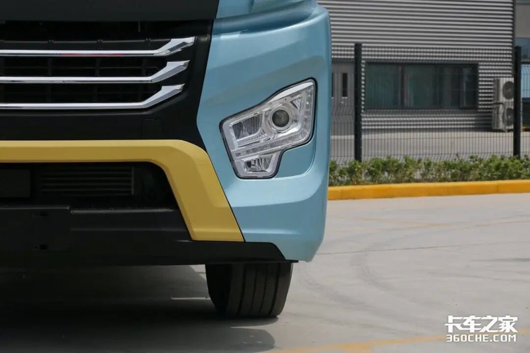灯组集成设计了远近光灯、转向灯、LED日行灯以及雾灯,则布置在三段式保险杠上,不同于其他重卡,龙骧重卡的保险杠中部采用了黄色涂装,看上去更别具一格。