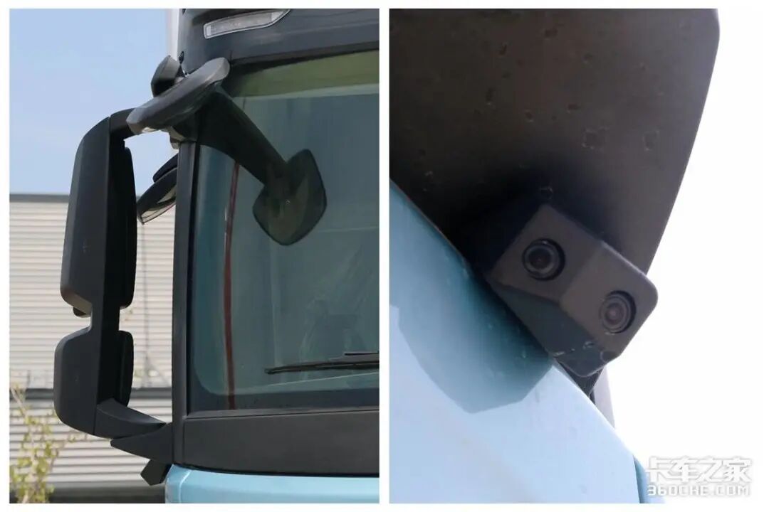 盲区过大也是很多货车事故的主要原因,这款龙骧重卡后视镜采用的是分体式设计,搭配两块照地镜,同时搭配360环视,左右两侧以及驾驶室前方、整车后方等设计有多路摄像头,驾驶员可以随时观测车辆周围的情况,提升驾驶安全。