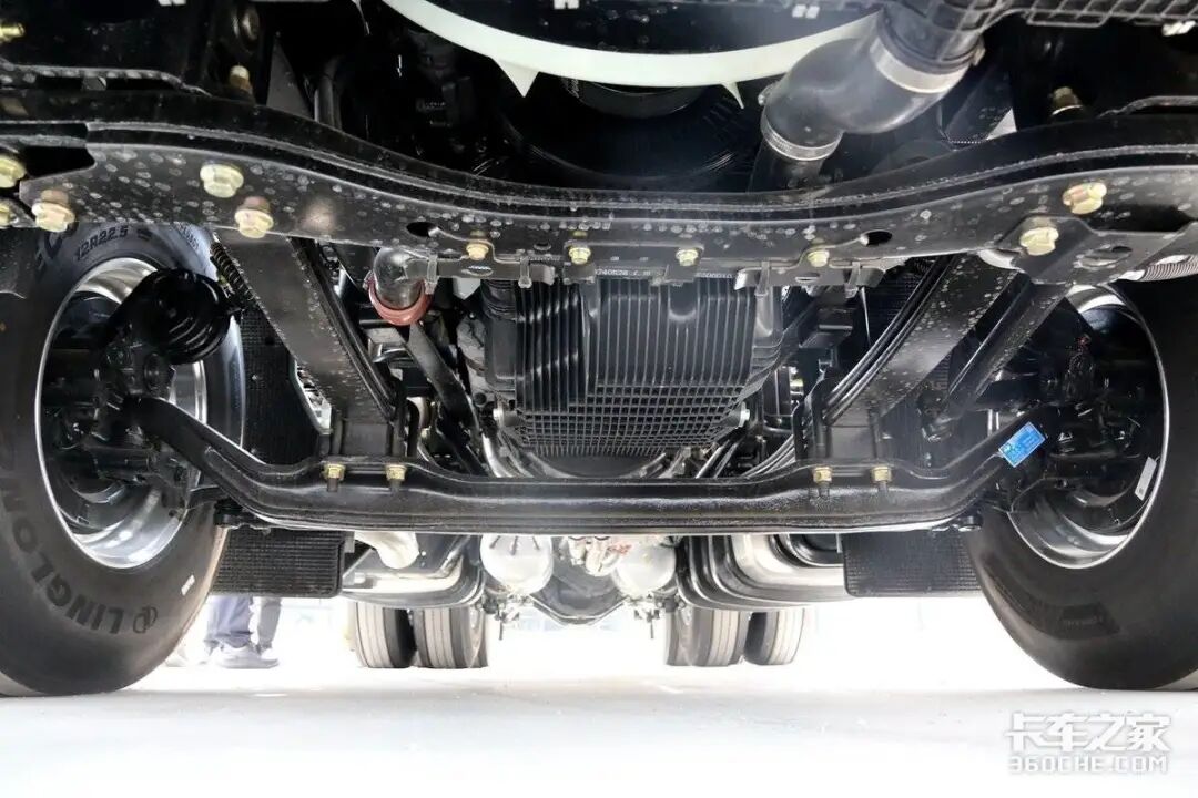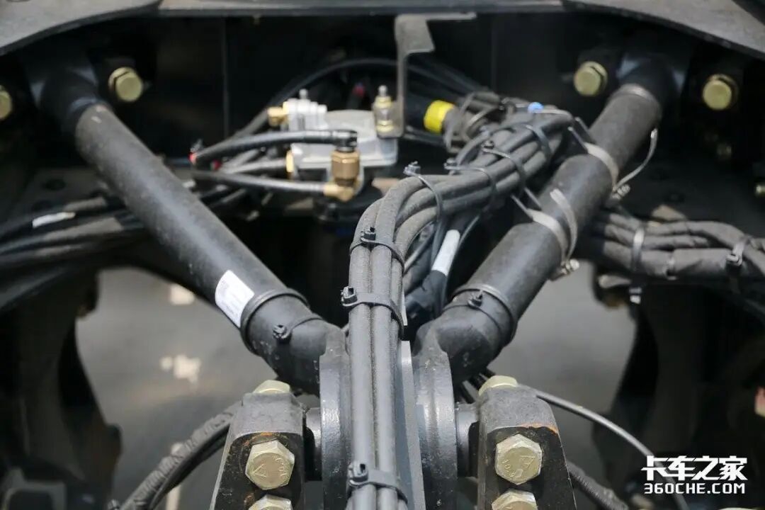 驾驶室采用的是全浮式驾驶室悬置,再加上可变刚度气囊,驾驶更加平稳;动力总成悬置采用压铸钢减震垫,V字楔型布置橡胶结构。在噪音控制方面,车门采用的是无断点双道密封,无论是减震还是隔音性能,都足够优秀。
