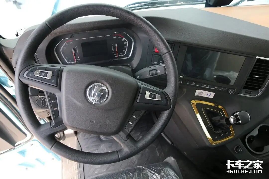 龙骧重卡主驾驶采用的是9项调节的气囊减震座椅,整体内饰也和德龙X5000S设计相似,标配多功能方向盘,集成了蓝牙电话以及定速巡航,中控的大尺寸显示屏集成了包括360环视在内的多项功能,操作起来很方便。