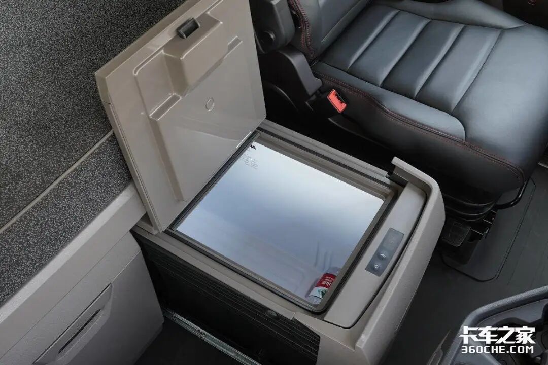功能性方面,欣众行购置的这一批斯堪尼亚650S的卧铺下方标配有空间非常大的车载冰箱,温度能够调节到-15度。