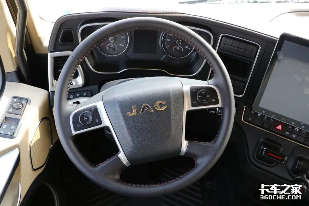 有一些车他为了追求舒适性,把驾驶室悬置设计的特别软。虽然说这样减震效果不错,颠簸路面会比较舒服;但是司机在平路或者高速上驾驶会“左摇右晃”,长时间驾驶下来容易产生头晕的情况。这款江淮超越Q7所采用的四点气囊悬置驾驶室是根据高速工况来进行标定设计而来,减震效果软硬适中,最直观的就是车辆在不会在高速上行驶的时候出现“左摇右晃”的情况产生,长时间开起来特别的稳。