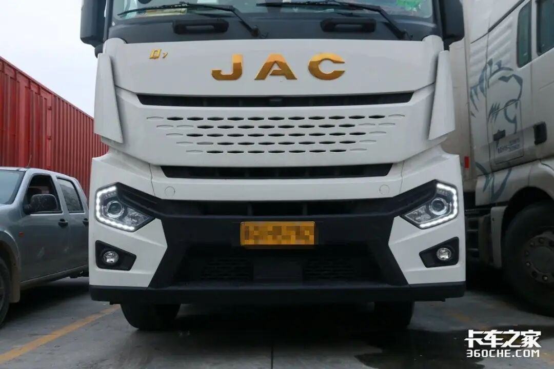 不同于我们熟知的江淮重卡A系、K系产品。这款超越Q7的前脸设计更柔和,采用封闭式中网,减少了镀铬装饰,似乎更彰显金色车标“JAC”和“Q7”标志。而且前脸上的进气格栅由蜂窝式设计改为椭圆形镂空设计,看上去简单明了,更符合当下年轻群体的口味。