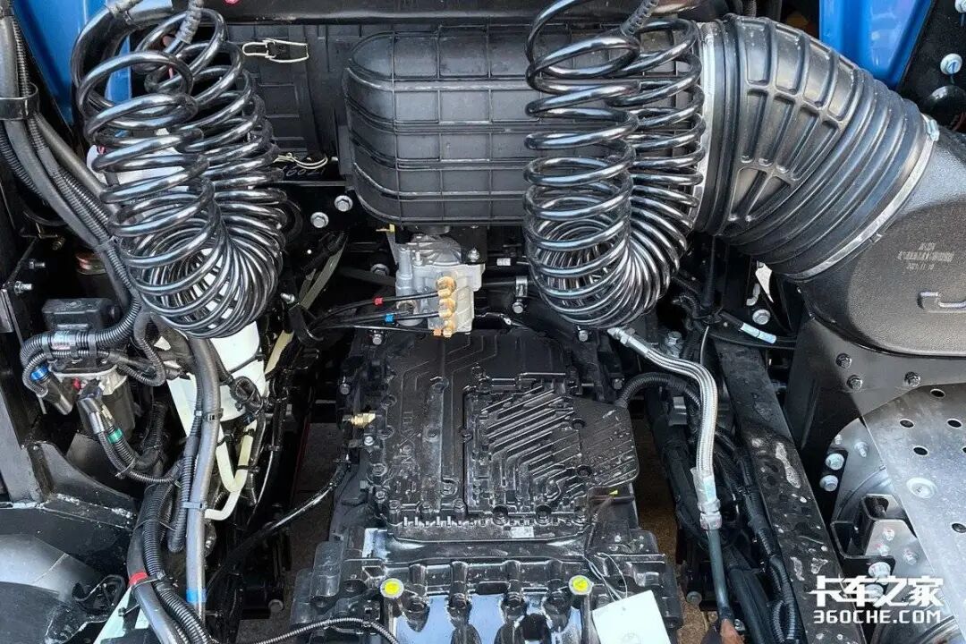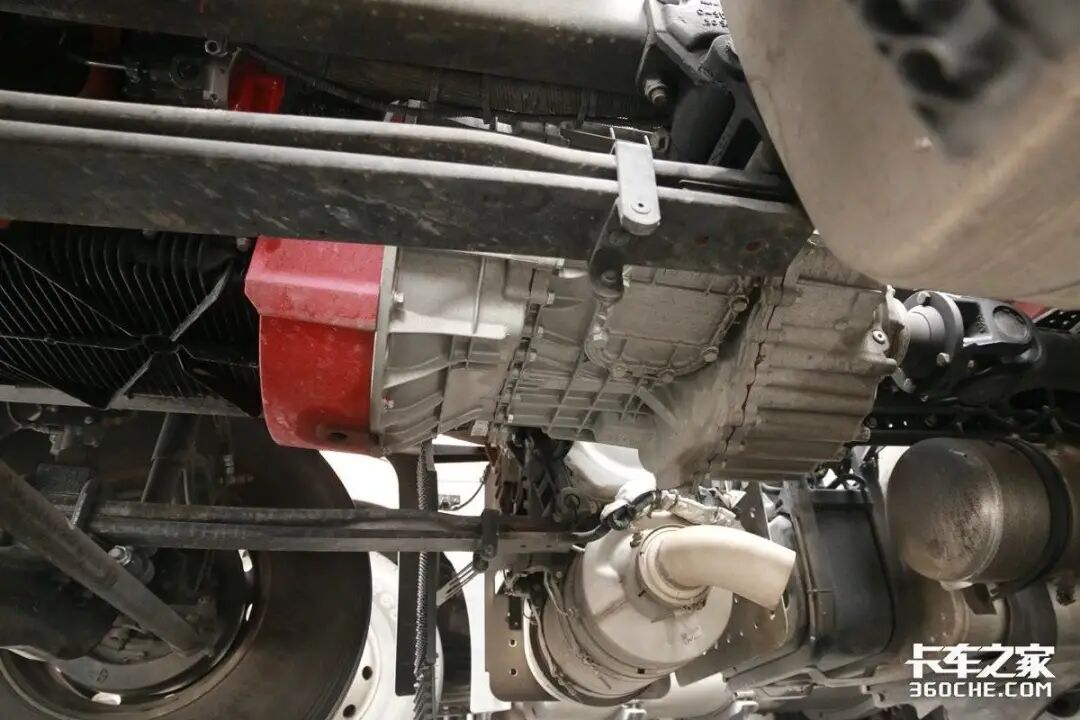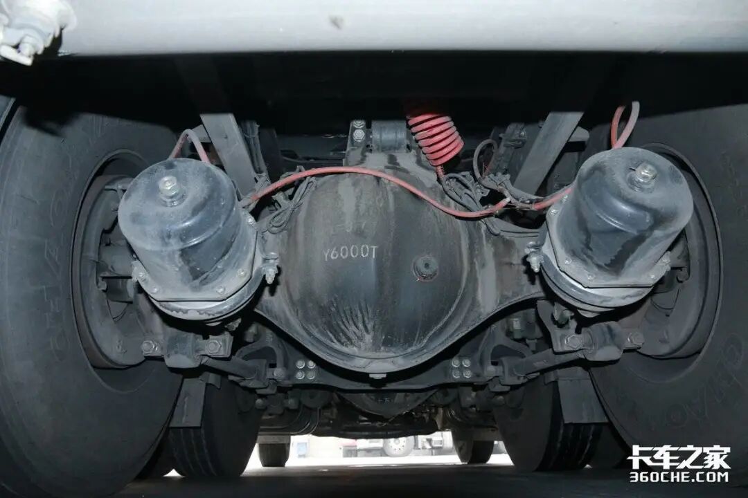 底盘方面,该车的前桥为锻钢件、工字型断面;后桥为单级减速桥,3.7速比。该车型采用采用前2后3钢板悬架,没有配置空气悬架,不过可以选配。张师傅也说了,还是有空气悬架好一些,一是整车自重更轻,更装载更多的货物;二是对于干线物流运输来说,最重要的就是时效性,而空气悬架恰好能更快的完成甩挂操作,提高运输效率。