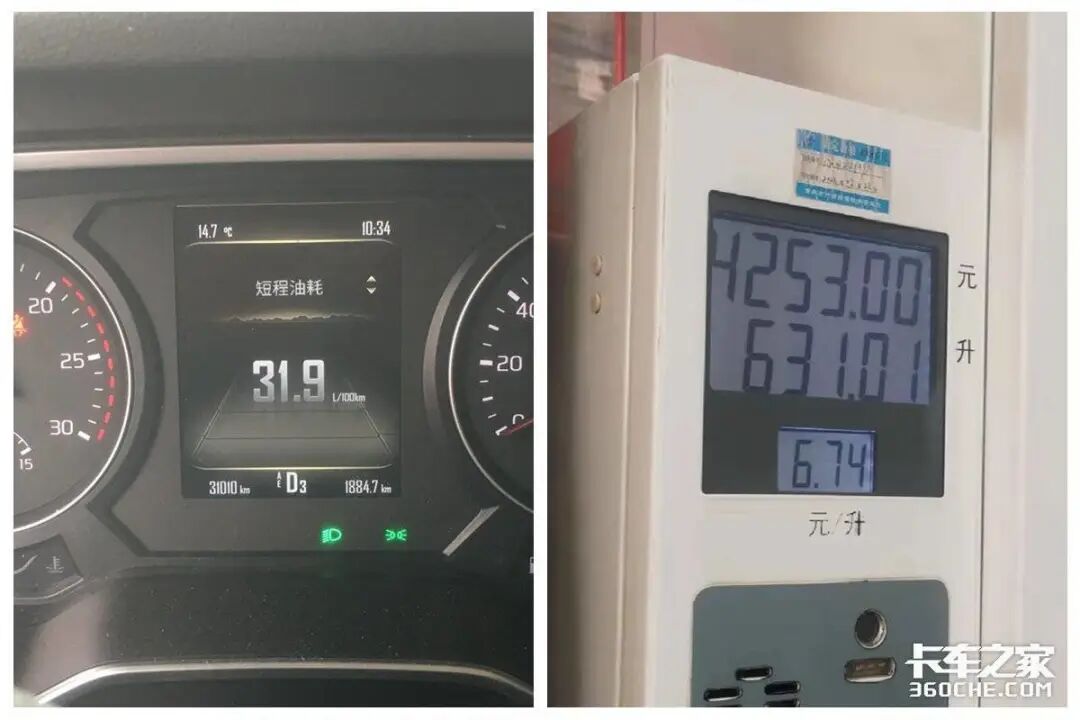 这款超越Q7采用双油箱设计,容积分别为800+200L,共1000L的容积。油箱壳体是采用铝合金材料材质,不仅防腐性能好,还降低了整车自重。另外,我们也对这款超越Q7进行了油耗测试,在仪表上显示的平均油耗为31.9升,总里程是三万一千多公里。为了更真实的油耗数据,我们在跑了1975公里后(包含1300公里山路),来到加油站加油,如图所示共加了631升燃油,算下来平均油耗在32升左右,卡友们觉得这个油耗水平如何?