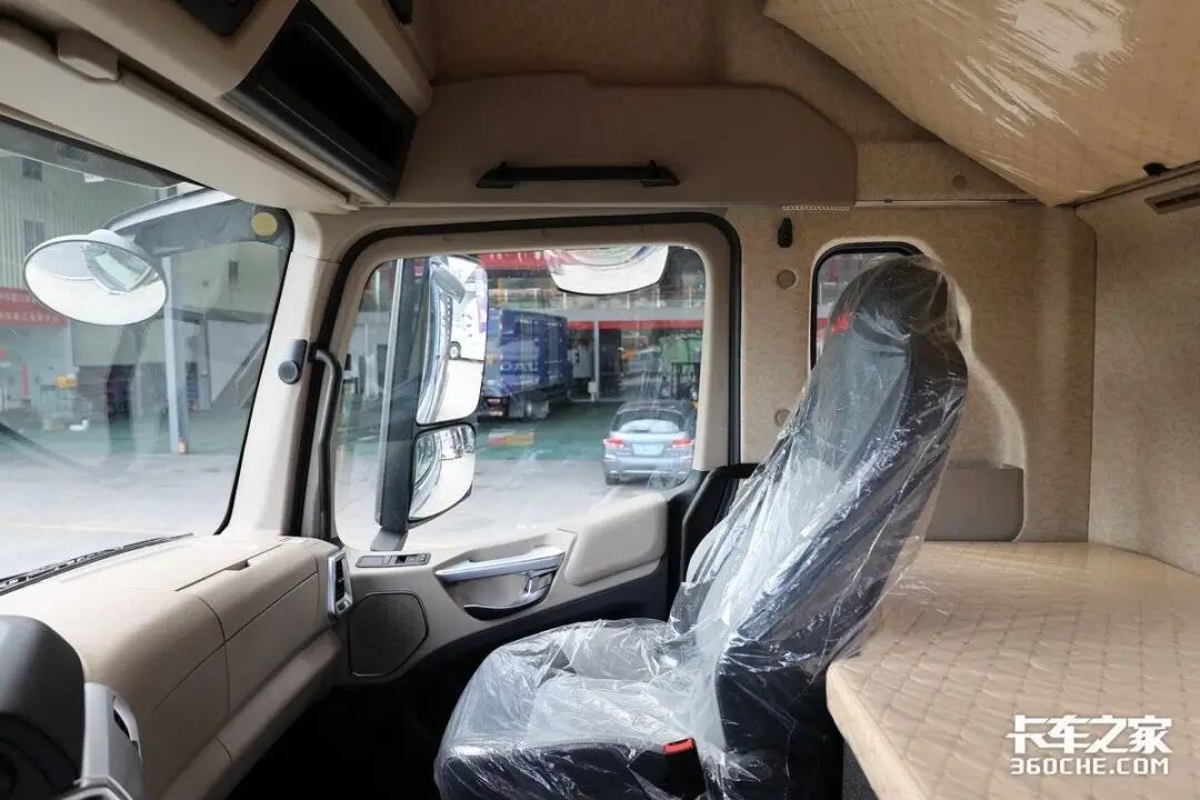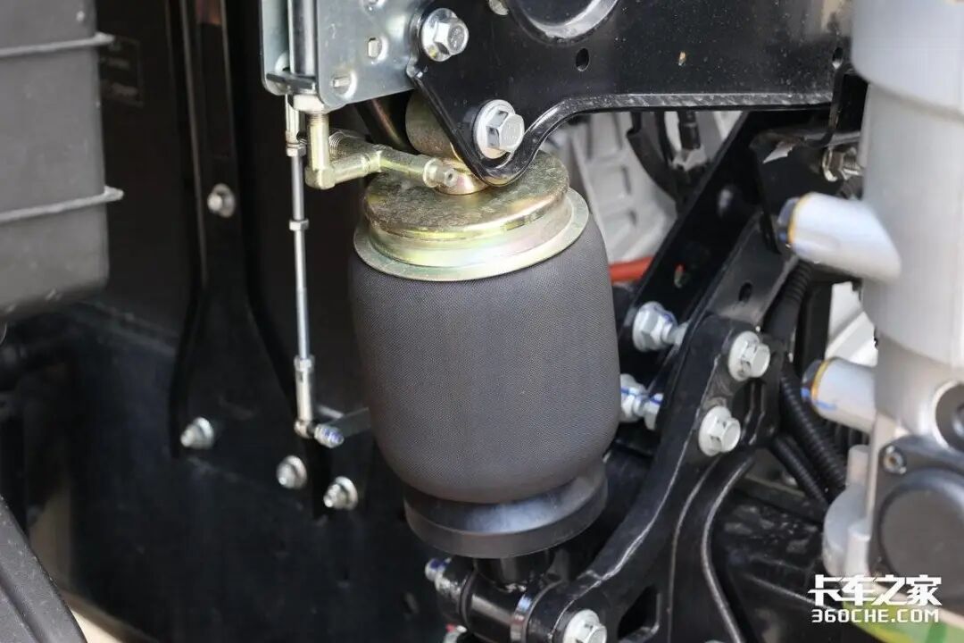 超越Q7驾驶室采用4点全浮空气弹簧,作为高端牵引车的标配,空气弹簧能让驾驶室的舒适感更好。