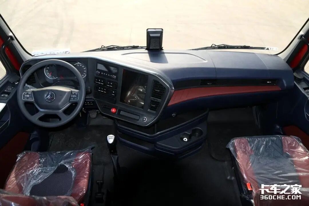 最后就是舒适性方面了,该车匹配高顶平地板长款双卧驾驶室,其驾驶舱可活动区域的净高度达到1.98米。在操作台布局上,12寸中控高清大屏极其吸引眼球,且具有影音娱乐、导航、手机互联等功能。操作台上还配备了外开式储物格以及其上方的内置杯筒,实用性很高。