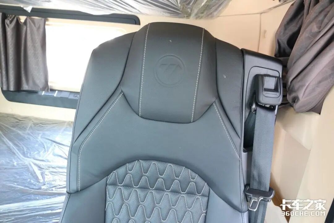 车辆行驶过程中,气囊减震座椅会上下浮动,如果采用常规安全带,肩部会因过度摩擦而不舒服,银河牵引车主驾驶座椅采用的是一体化安全带,而且安全带可调节,避免出现安全带勒肩膀或者脖子的情况。