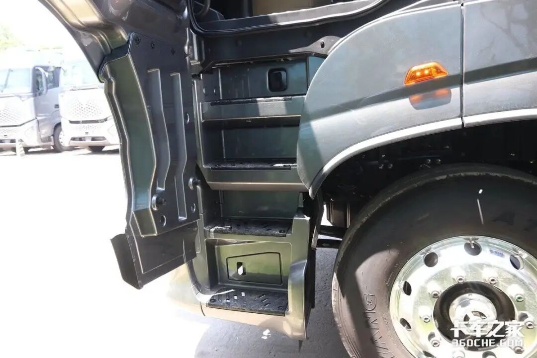 银河重卡采用的是纯平地板设计,这在国产旗舰重卡中不足为奇,但纯平地板也就意味着驾驶室地板离地高度更高,而银河牵引车采用了四层蹬车踏板,相比同级别车型,缩小了层高,实测上下车更方便。