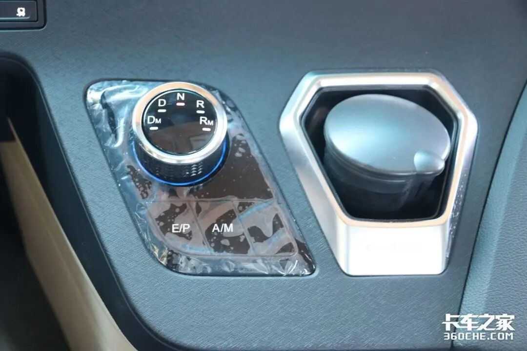 银河牵引车的换挡机构采用的是旋钮式设计,而且带有蠕行挡,旋钮下方设计有经济/动力模式以及自动/手动模式切换按钮,整体布置在中控台下方,进一步释放了主副驾之间的空间。并且带有换挡拨片,在手动模式下,可以非常方便的实现加减挡位。