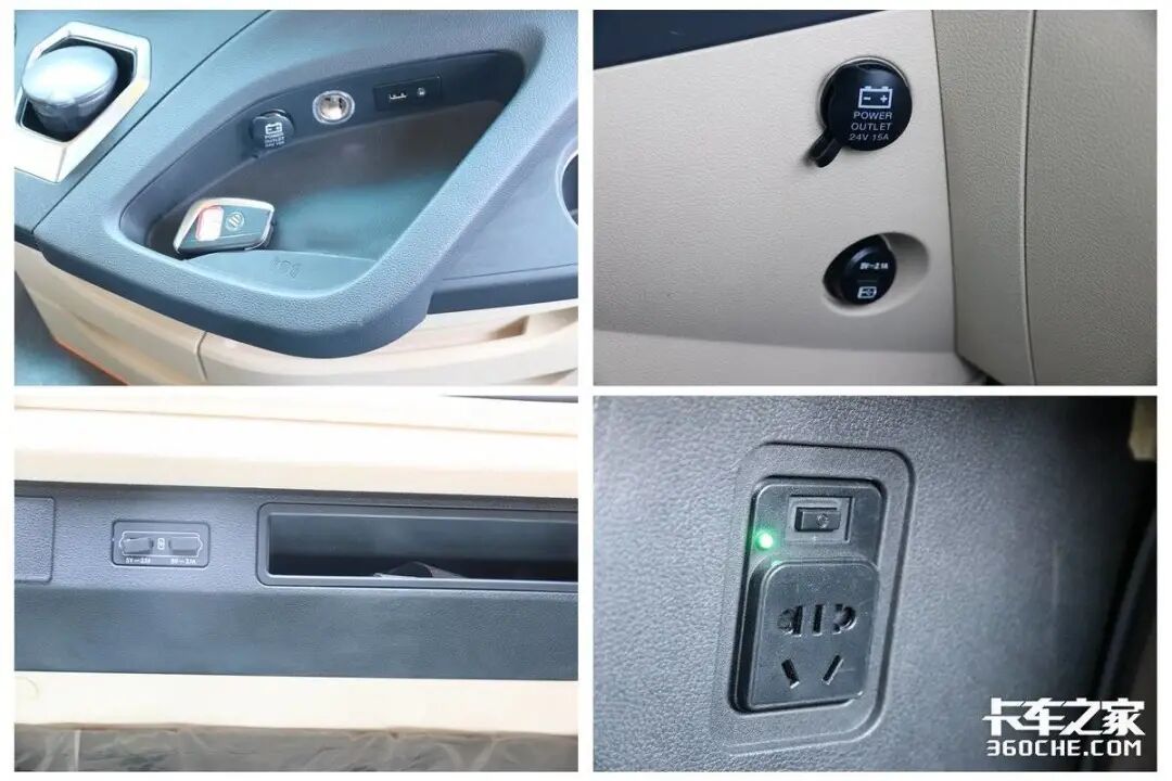 长途行驶,用电一向是个大难题。银河牵引车在中控台下方设计有点烟器插口以及USB充电插口,而且带有乘用车中常见的手机无线充电!卧铺一侧带有USB插口,主驾驶后方还带有两孔和三孔的家用电源插口,基本上各种小家电都可以使用。